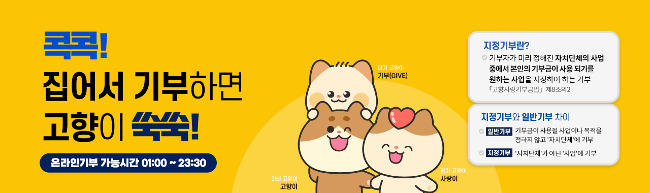 ‘고향사랑e음’은 전국 모든 지자체에 기부할 수 있는 공식 온라인 플랫폼입니다.