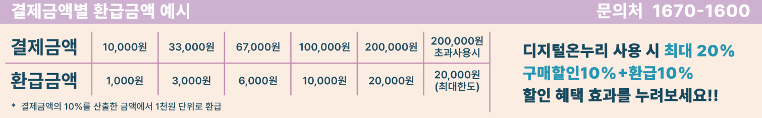 - 10% 할인 구매 + 10% 환급 = 최대 20% 혜택