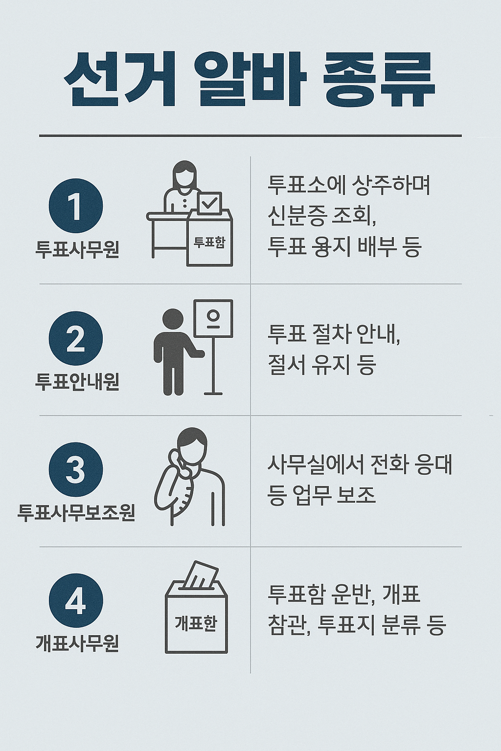 단순 아르바이트가 아니라, 공공기관의 선거 절차를 돕는 중요한 역할이에요.