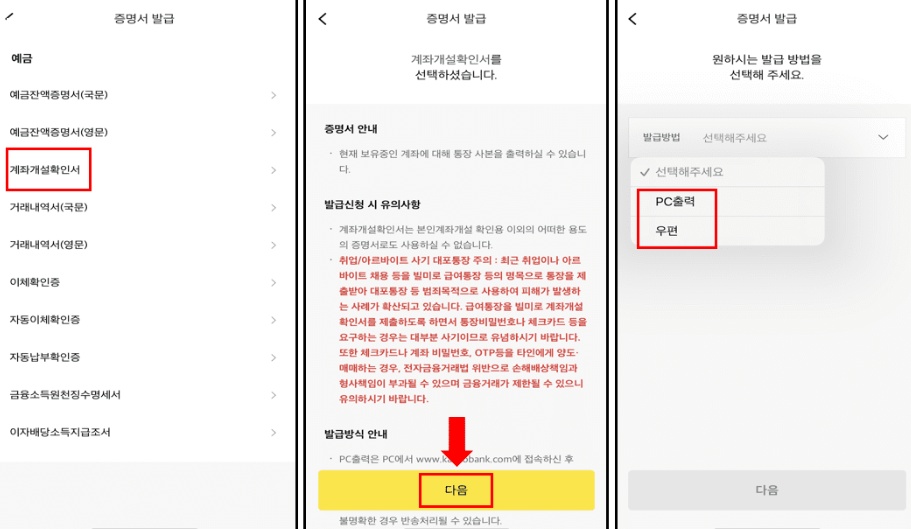 여기서 ‘계좌개설확인서’를 선택하면 끝! 🎯