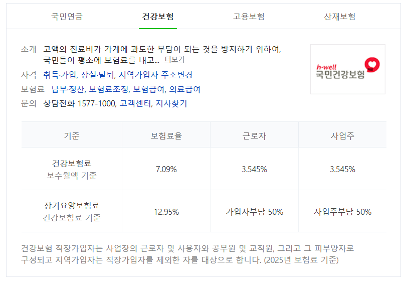 - 2025년 건강보험료율: 7.09%